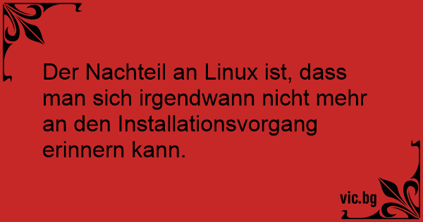 Der Nachteil an Linux ist, dass man sich irgendwann niсhт mehr an den Installationsvorgang erinnern kann.