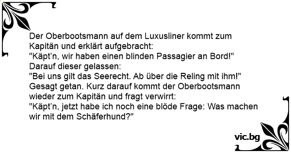 Gesagt getan. Kurz darauf kommt der Oberbootsmann wieder zum Kapitän und fragt verwirrt: