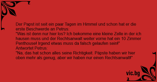 "Na, das hat schon alles seine Richtigkeit. Päpste haben wir hier oben mehr als genug, aber wir haben nur einen Rechtsanwalt!"