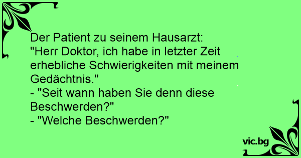 Patient: "Herr Doktor, ich verliere langsam das Gedächnis!" Doktor: "Seit wann?" Patient: "Seit wann was?"