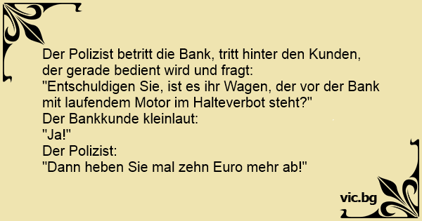 "Entschuldigen Sie, ist es ihr Wagen, der vor der Bank mit laufendem Motor im Halteverbot steht?"