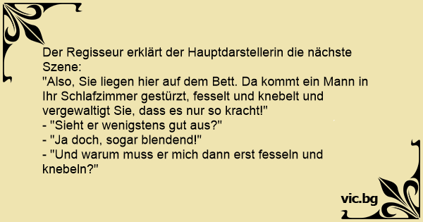 "Also, Sie liegen hier auf dem Bett. Da kommt ein Mann in Ihr Schlafzimmer gestürzt, fesselt und knebelt und vergewaltigt Sie, dass es nur so kracht!"