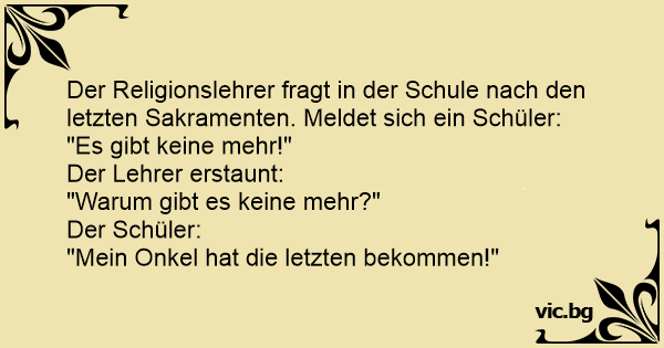 Der Religionslehrer fragt in der Schule nach den letzten Sakramenten. Meldet sich ein Schüler: