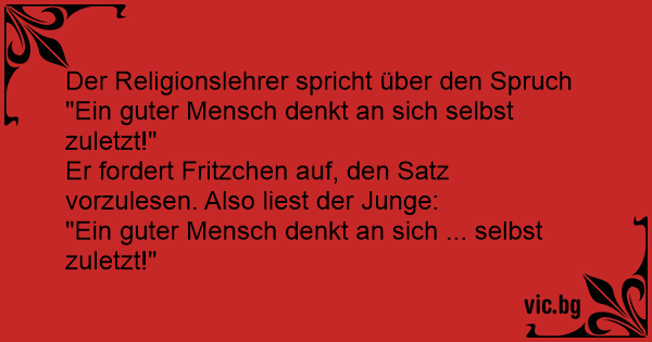 Der Religionslehrer spricht über den Spruch "Ein guter Mensch denkt an sich selbst zuletzt!"