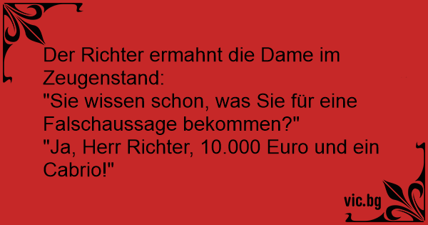 Prokurors vaicā lieciniekam: - Vai jūs zināt, kas jums būs par nepatiesu liecības sniegšanu? - Nu, it kā jau desmit tūkstošus apsolīja!
