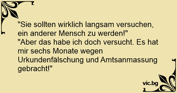 "Aber das habe ich doch versucht. Es hat mir sechs Monate wegen Urkundenfälschung und Amtsanmassung gebracht!"