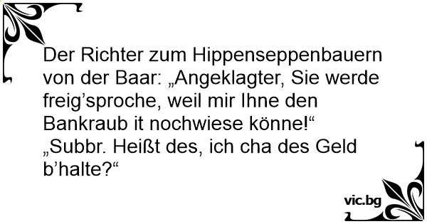 Der Richter zum Hippenseppenbauern von der Baar: „Angeklagter, Sie werde freig’sproche, weil mir Ihne den Bankraub it nochwiese könne!“