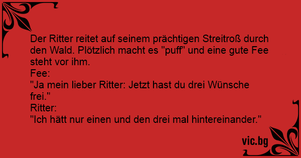 "Ja mein lieber Ritter: Jetzt hast du drei Wünsche frei."