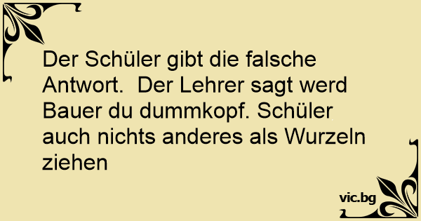 Der Schüler gibt die falsche Antwort. Der Lehrer sagt werd Bauer du duммкорf. Schüler auch nichts anderes als Wurzeln ziehen