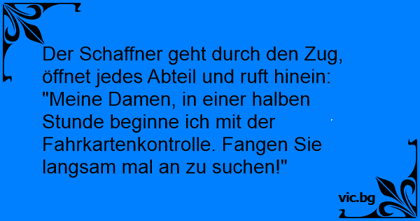 "Meine Damen, in einer halben Stunde beginne ich mit der Fahrkartenkontrolle. Fangen Sie langsam mal an zu suchen!"