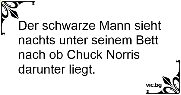 Der schwarze Mann sieht nachts unter seinem Bett nach ob Chuck Norris darunter liegt.