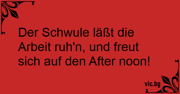 Der Schwule läßt die Arbeit ruh'n, und freut sich auf den After noon!