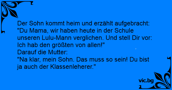 "Du Mama, wir haben heute in der Schule unseren Lulu-Mann verglichen. Und stell Dir vor: Ich hab den größten von allen!"