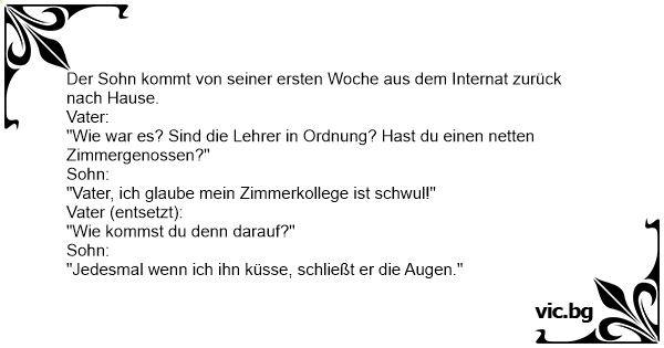 "Vater, ich glaube mein Zimmerkollege ist schwul!"