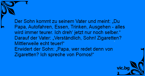 Erwidert der Sohn: „Papa, wer redet denn von Zigaretten? Ich spreche von Роrnоs!“