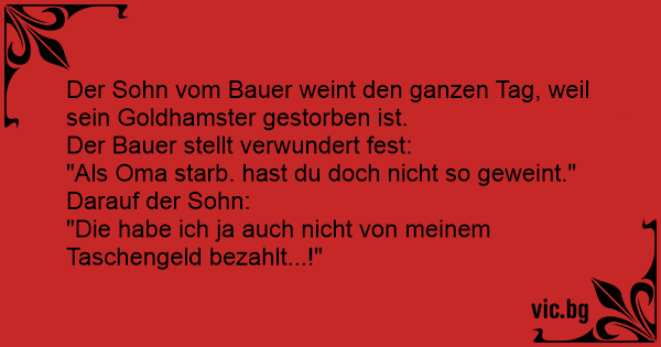 Der Sohn vom Bauer weint den ganzen Tag, weil sein Goldhamster gestorben ist.
