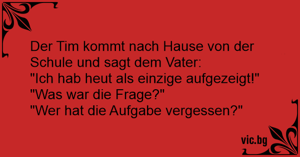 Der Tim kommt nach Hause von der Schule und sagt dem Vater:
