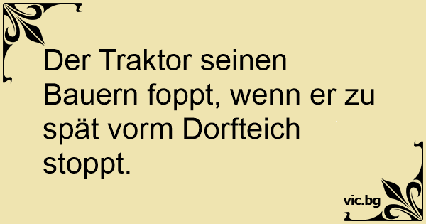 Der Traktor seinen Bauern foppt, wenn er zu spät vorm Dorfteich stoppt.