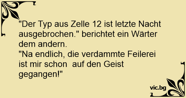 "Der Typ aus Zelle 12 ist letzte Nacht ausgebrochen." berichtet ein Wärter dem andern.