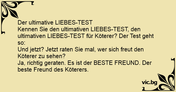 Kennen Sie den ultimativen LIEBES-TEST, den ultimativen LIEBES-TEST für Köterer? Der Test geht so: