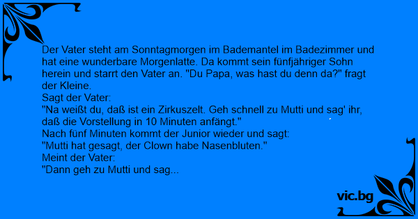 Der Vater steht am Sonntagmorgen im Bademantel im Badezimmer und hat eine wunderbare Моrgеnlатте. Da kommt sein fünfjähriger Sohn herein und starrt den Vater an. "Du Papa, was hast du denn da?" fragt der Kleine.