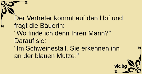 Der Vertreter kommt auf den Hof und fragt die Bäuerin: