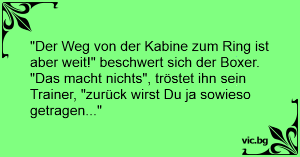 "Der Weg von der Kabine zum Ring ist aber weit!" beschwert sich der Boxer.