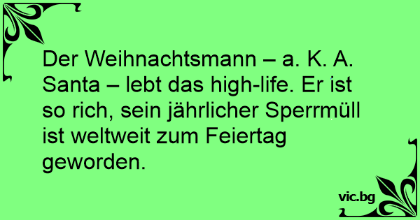 Der Weihnachtsmann – a. K. A. Santa – lebt das high-life. Er ist so rich, sein jährlicher Sperrmüll ist weltweit zum Feiertag geworden.