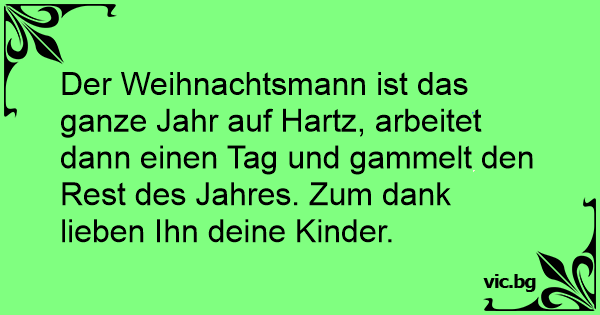 Der Weihnachtsmann ist das ganze Jahr auf Hartz, arbeitet dann einen Tag und gammelt den Rest des Jahres. Zum dank lieben Ihn deine Kinder.