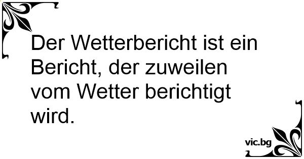 Der Wetterbericht ist ein Bericht, der zuweilen vom Wetter berichtigt wird.