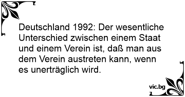 Deutschland 1992: Der wesentliche Unterschied zwischen einem Staat und einem Verein ist, daß man aus dem Verein austreten kann, wenn es unerträglich wird.