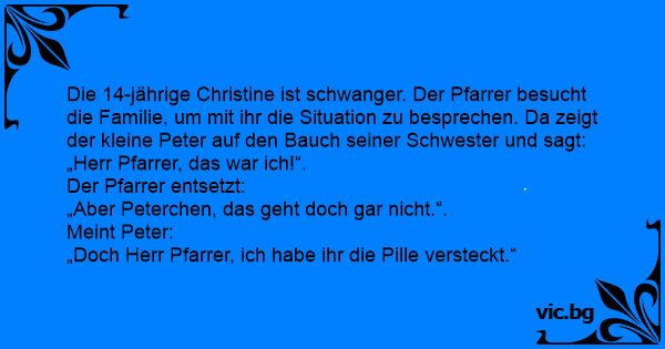 Die 14-jährige Christine ist schwanger. Der Pfarrer besucht die Familie, um mit ihr die Situation zu besprechen. Da zeigt der kleine Peter auf den Bauch seiner Schwester und sagt: