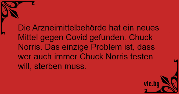 Die Arzneimittelbehörde hat ein neues Mittel gegen Covid gefunden. Chuck Norris. Das einzige Problem ist, dass wer auch immer Chuck Norris testen will, sterben muss.