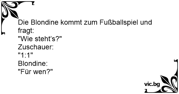 Die Blondine kommt zum Fußballspiel und fragt: