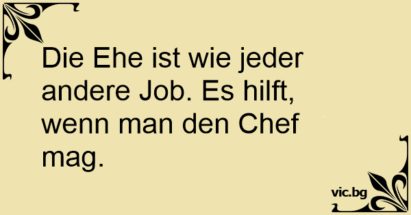 Die Ehe ist wie jeder andere Job. Es hilft, wenn man den Chef mag.