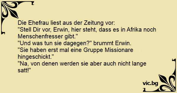 "Stell Dir vor, Erwin, hier steht, dass es in Afrika noch Menschenfresser gibt."