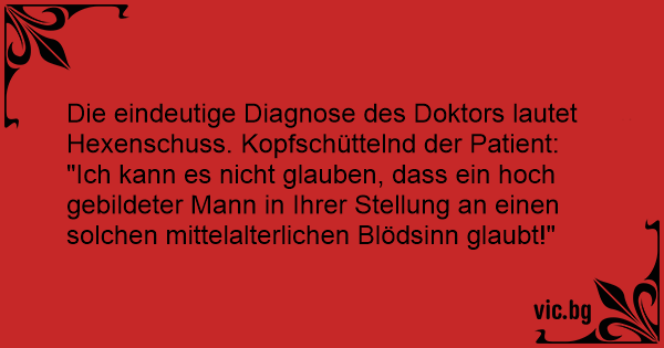 Die eindeutige Diagnose des Doktors lautet Hexenschuss. Kopfschüttelnd der Patient: