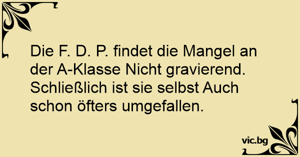 Die F. D. P. findet die Mangel an der A-Klasse Niсhт gravierend. Schließlich ist sie selbst Auch schon öfters umgefallen.