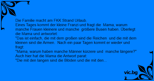 Eines Tages kommt der kleine Franzi und fragt die Mama, warum manche Frauen kleinere und manche größere Busen haben. Überlegt die Mama und antwortet: