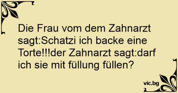 Die Frau vom dem Zahnarzt sagt:Schatzi ich backe eine Torte!!!der Zahnarzt sagt:darf ich sie mit füllung füllen?
