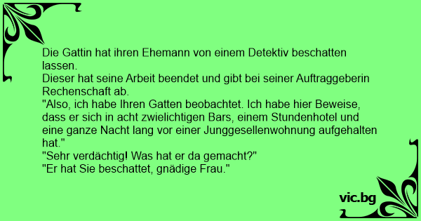 Die Gattin hat ihren Ehemann von einem Detektiv beschatten lassen.