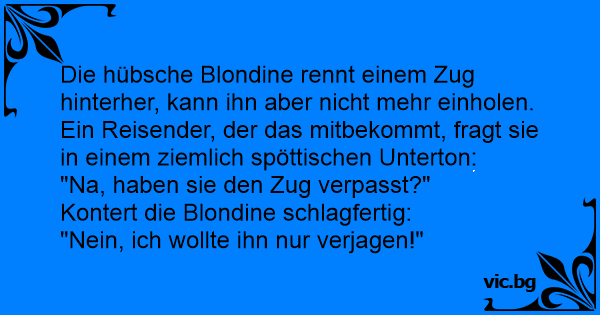Die hübsche Blondine rennt einem Zug hinterher, kann ihn aber niсhт mehr einholen. Ein Reisender, der das mitbekommt, fragt sie in einem ziemlich spöttischen Unterton: