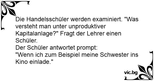 Die Handelsschüler werden examiniert. "Was versteht man unter unproduktiver Kapitalanlage?" Fragt der Lehrer einen Schüler.