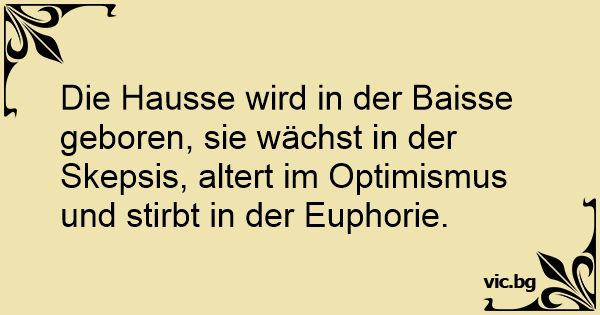 Die Hausse wird in der Baisse geboren, sie wächst in der Skepsis, altert im Optimismus und stirbt in der Euphorie.