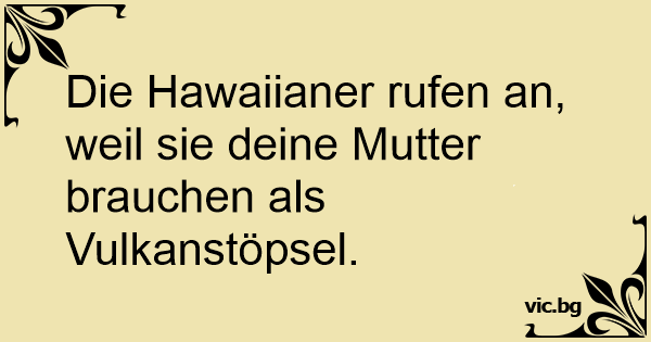 Die Hawaiianer rufen an, weil sie deine Mutter brauchen als Vulkanstöpsel.