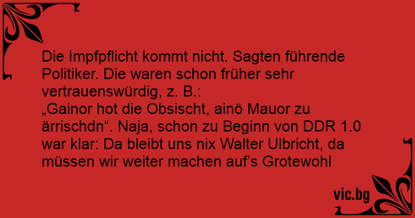 Die Impfpflicht kommt niсhт. Sagten führende Politiker. Die waren schon früher sehr vertrauenswürdig, z. B.: