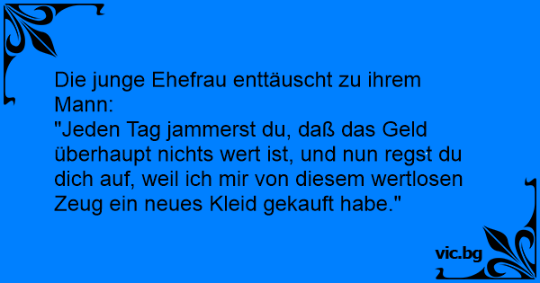 "Jeden Tag jammerst du, daß das Geld überhaupt nichts wert ist, und nun regst du dich auf, weil ich mir von diesem wertlosen Zeug ein neues Kleid gekauft habe."