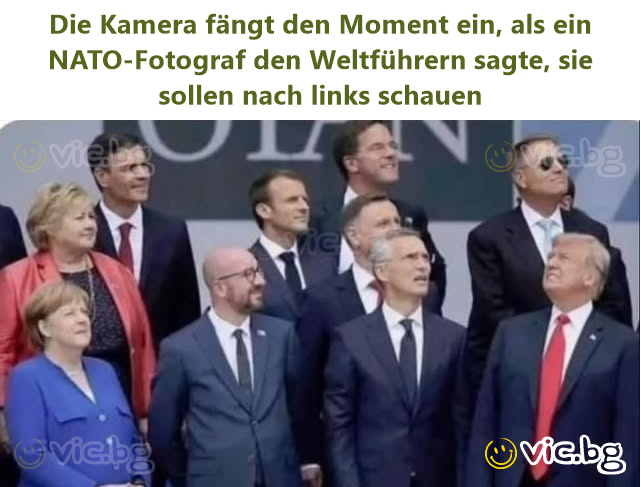 Camera catches the moment when a NATO photographer told world leaders to look left