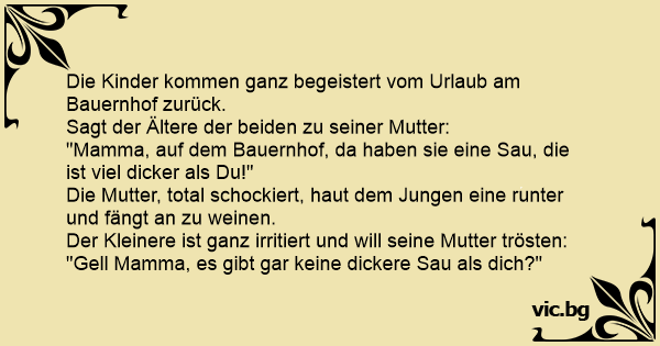"Mamma, auf dem Bauernhof, da haben sie eine Sau, die ist viel dicker als Du!"