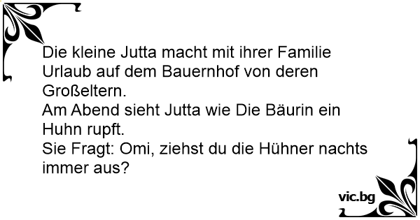 Sie Fragt: Omi, ziehst du die Hühner nachts immer aus?